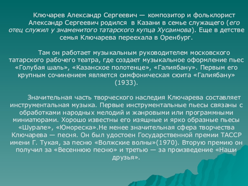 Слайд 5Ключарев Александр Сергеевич — композитор и фольклорист