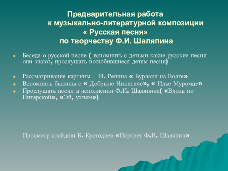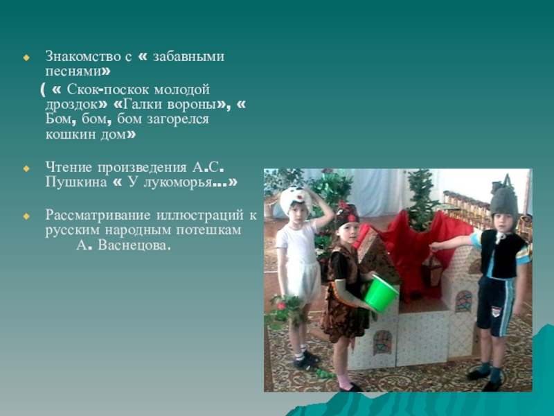 Беседа о русской песне ( вспомнить с детьми какие русские песни они знают, прослушать полюбившиеся детям песни)