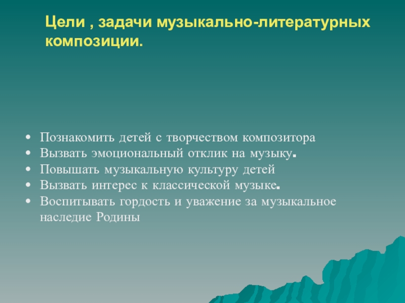 Воспитывать гордость и уважение за музыкальное наследие Родины