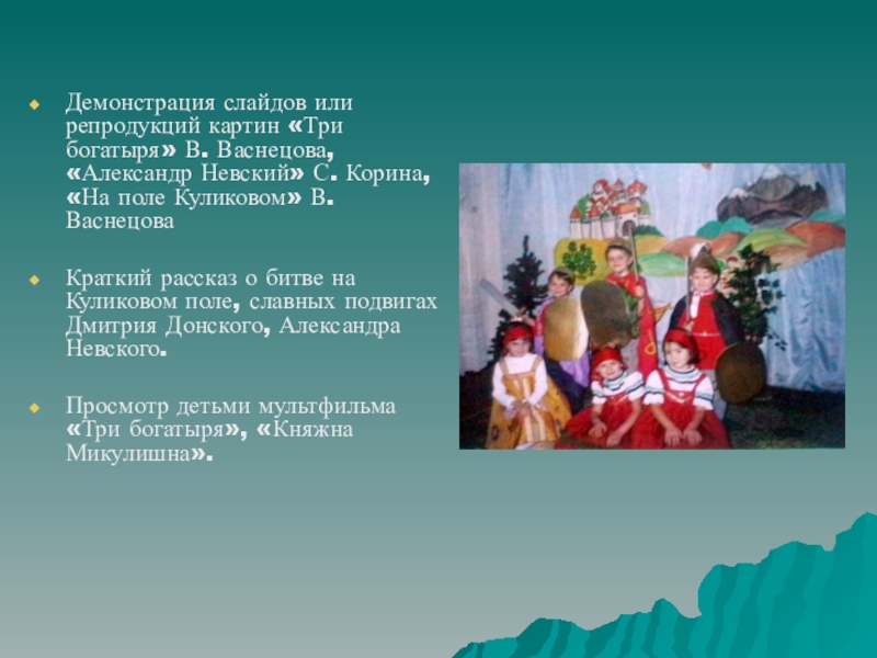 Вспомнить былины о « Добрыне Никитиче», « Илье Муромце»