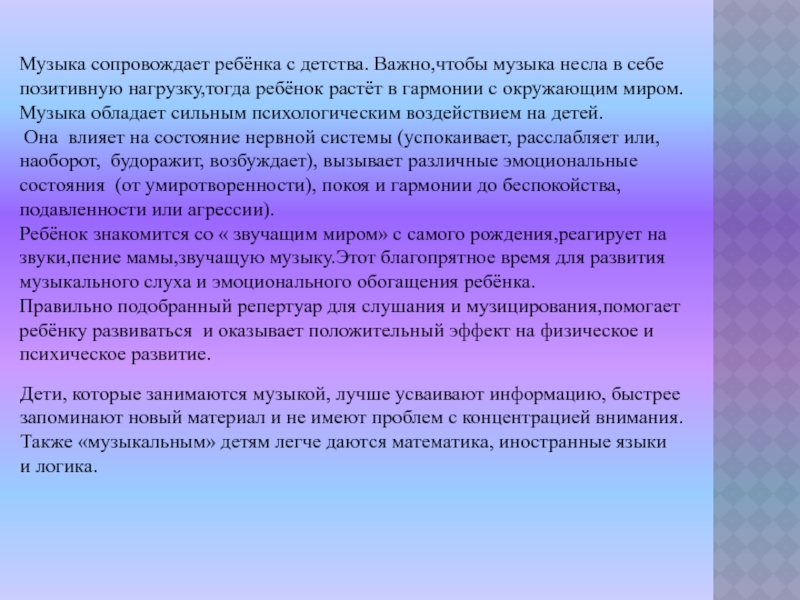 Также «музыкальным» детям легче даются математика, иностранные языки