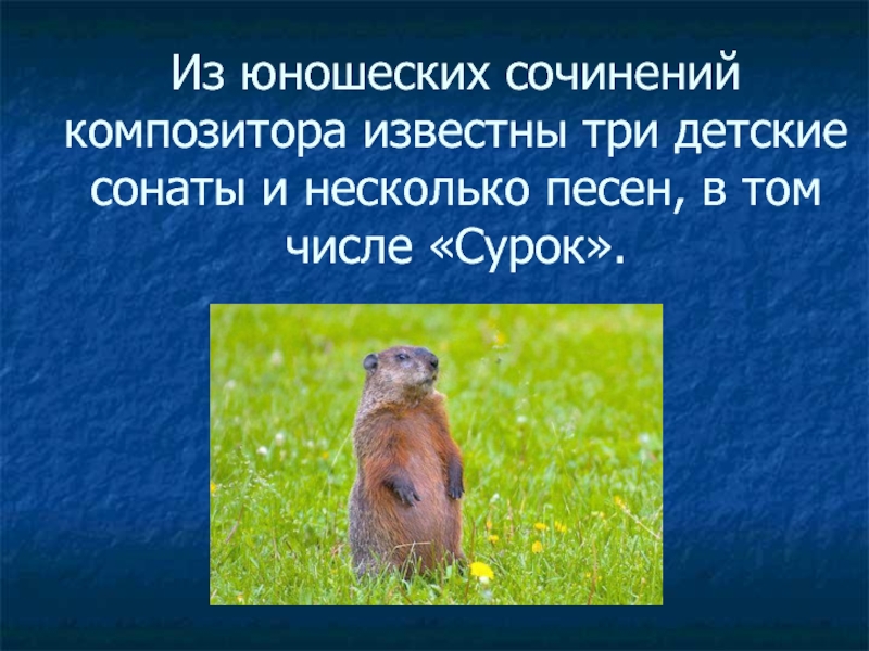 Слайд 7Из юношеских сочинений композитора известны три детские сонаты и несколько песен,