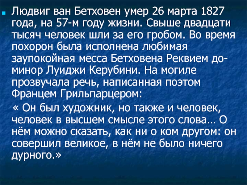 Слайд 21Людвиг ван Бетховен умер 26 марта 1827 года, на 57-м году