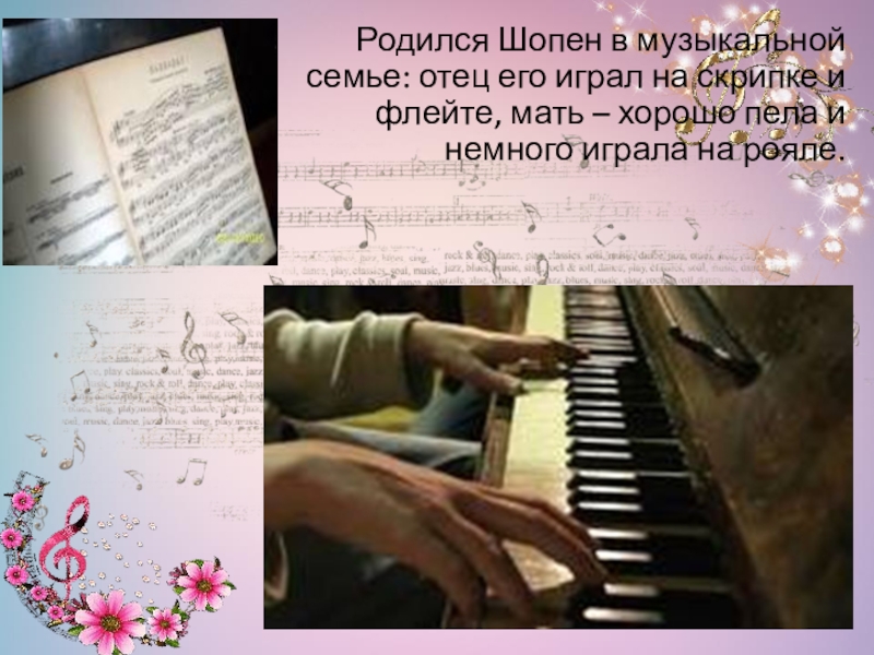 Слайд 4Родился Шопен в музыкальной семье: отец его играл на скрипке и