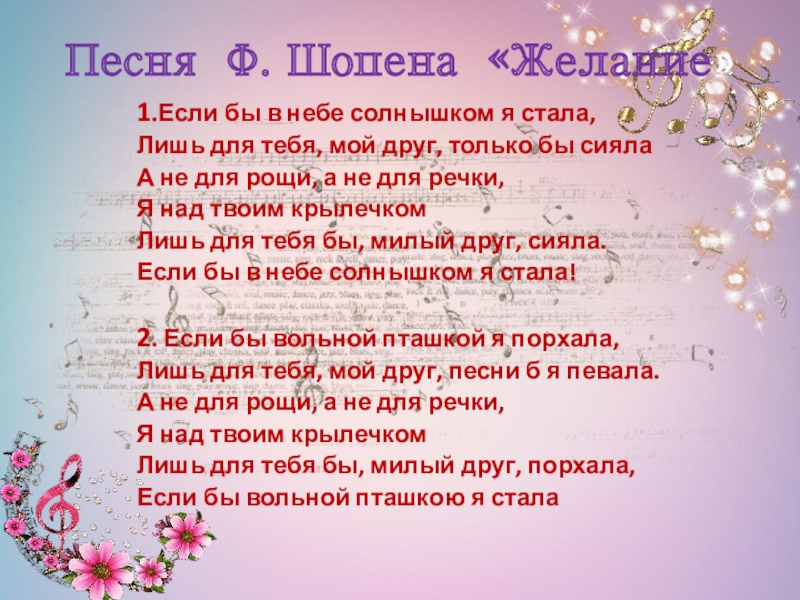 Слайд 38Песня Ф. Шопена «Желание»
