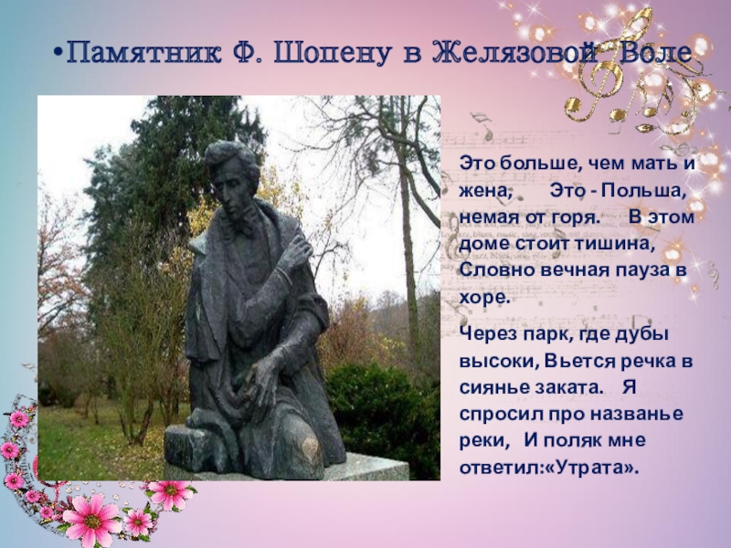 Слайд 7Памятник Ф. Шопену в Желязовой Воле