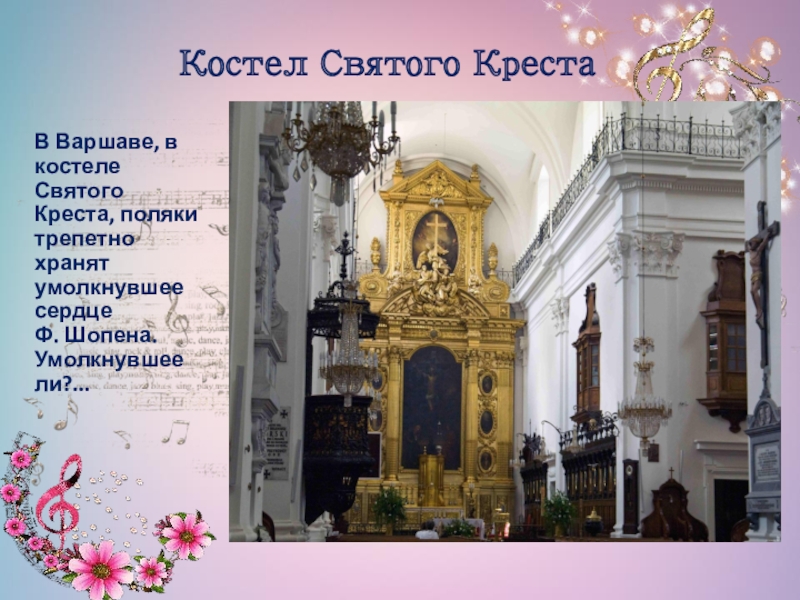 Слайд 12Костёл Святого Креста в Варшаве – последнее пристанище сердца Шопена.