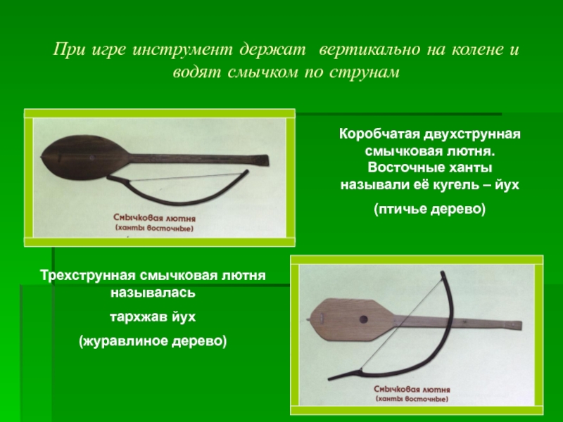Коробчатая двухструнная смычковая лютня. Восточные ханты называли её кугель – йух