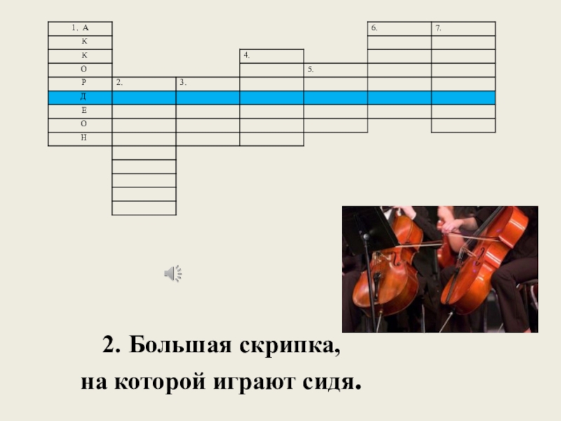 Слайд 32. Большая скрипка, на которой играют сидя.