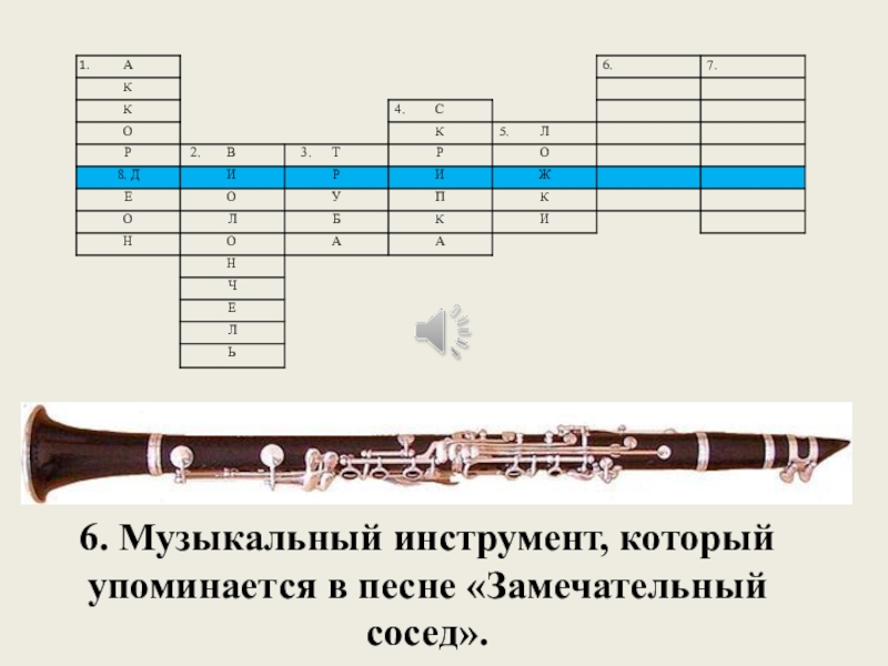 6. Музыкальный инструмент, который упоминается в песне «Замечательный сосед».