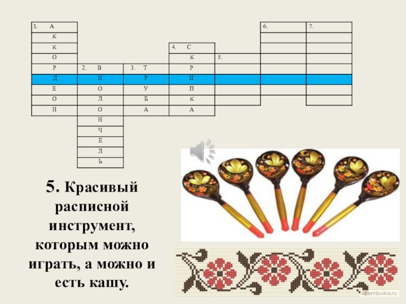 Слайд 65. Красивый расписной инструмент, которым можно играть, а можно и есть