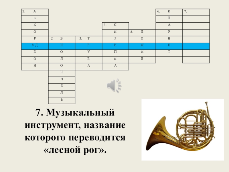 7. Музыкальный инструмент, название которого переводится «лесной рог».