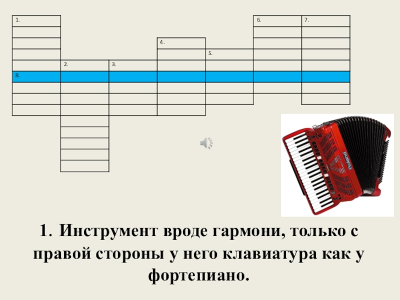 1. Инструмент вроде гармони, только с правой стороны у него клавиатура как у фортепиано.