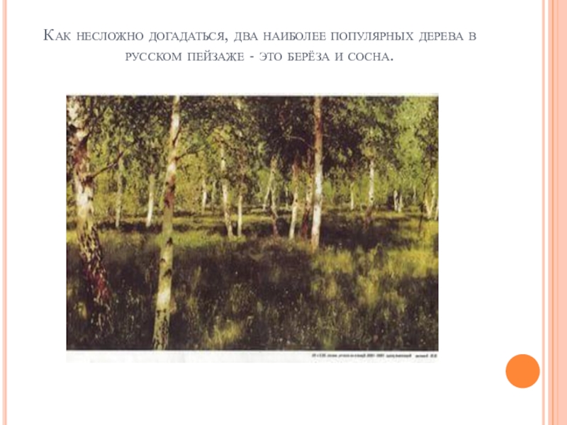Слайд 3Как несложно догадаться, два наиболее популярных дерева в русском пейзаже -