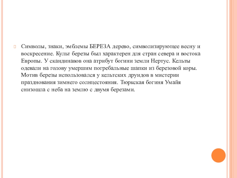 Символы, знаки, эмблемы БЕРЕЗА дерево, символизирующее весну и воскресение. Культ березы был характерен для стран севера и
