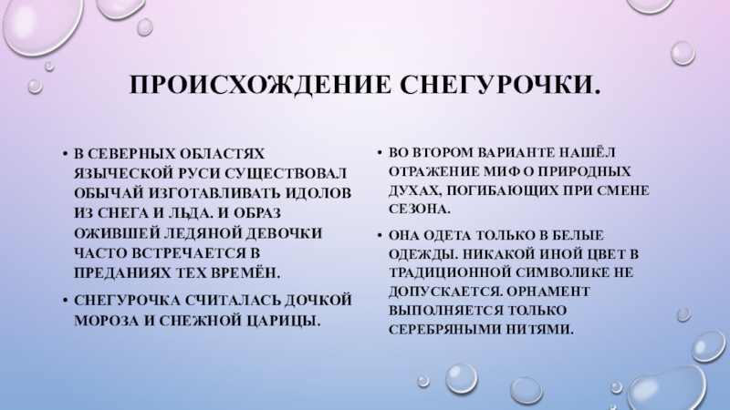 Во втором варианте нашёл отражение миф о природных духах, погибающих при смене сезона.