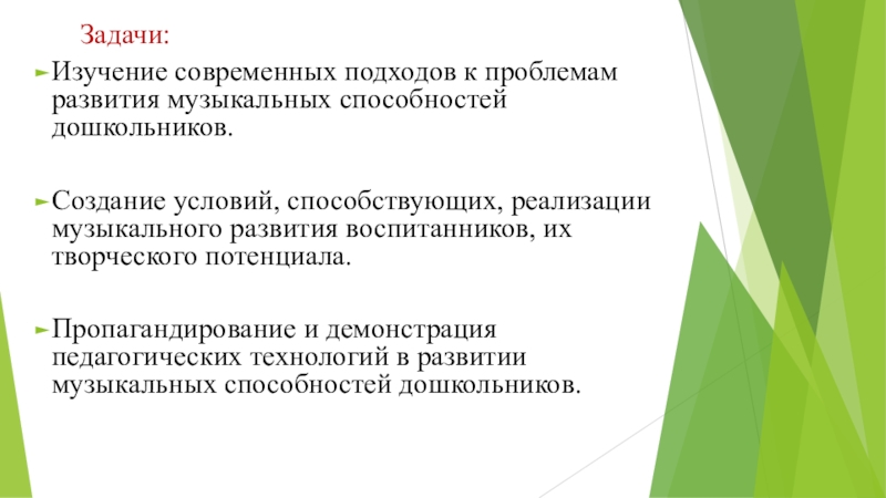 - разработка новых игровых технологий помогающих ребёнку в развитии музыкальных способностей;