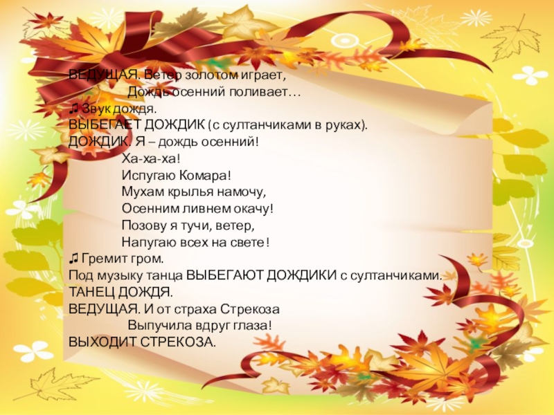 Слайд 6ВЕДУЩАЯ. Ветер золотом играет,