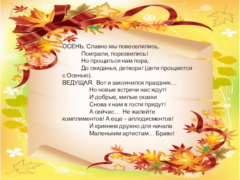 До свиданья, детвора! (дети прощаются с Осенью).