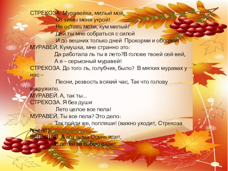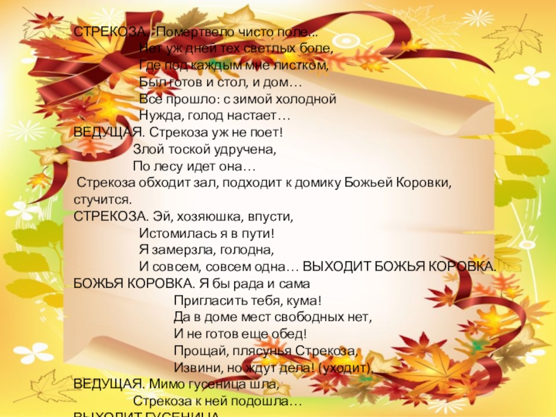 ВЕДУЩАЯ. Попрыгунья Стрекоза,