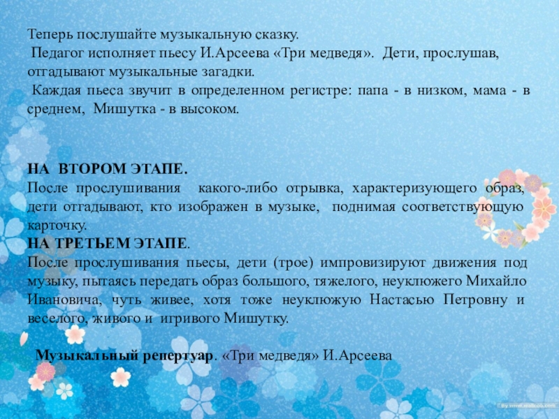 Музыкальный репертуар. «Три медведя» И.Арсеева