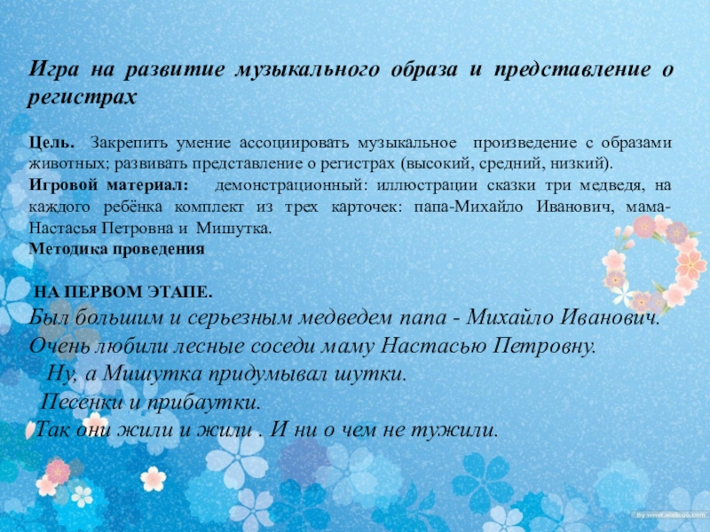 Слайд 9Игра на развитие музыкального образа и представление о регистрах
