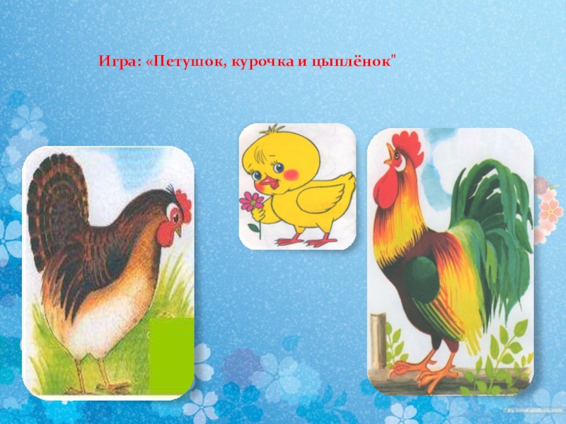Слайд 13Игра: «Петушок, курочка и цыплёнок"