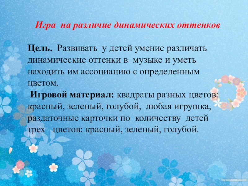 умение различать динамические оттенки в музыке и уметь находить им ассоциацию с определенным цветом.