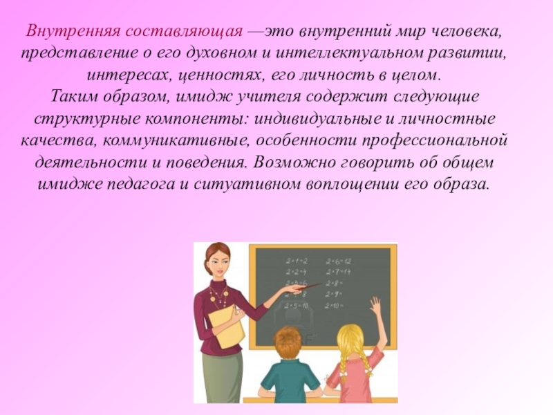 Имидж педагога – это жизненно эффективный образ, который существует во внутреннем мире и дает позитивные результаты в реальной жизни человека.