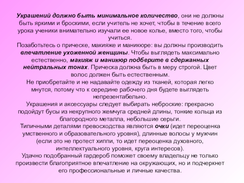 броскими, если учитель не хочет, чтобы в течение всего урока ученики внимательно изучали ее новое колье, вместо того, чтобы учиться.
