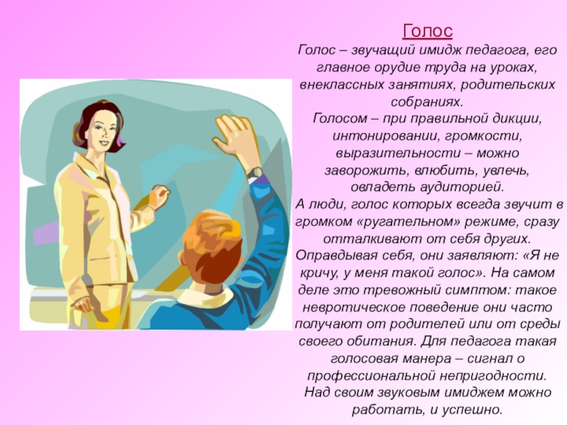 Голос – звучащий имидж педагога, его главное орудие труда на уроках,