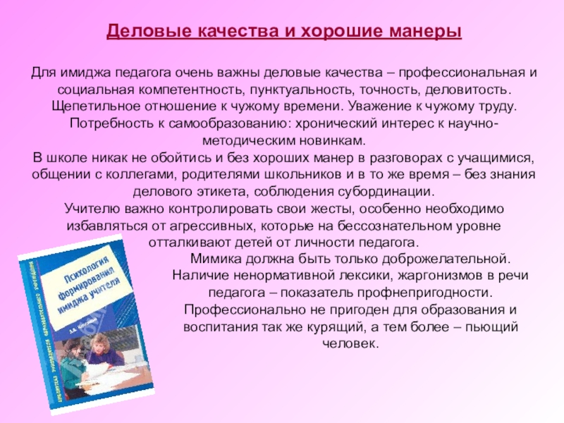В школе никак не обойтись и без хороших манер в разговорах с учащимися, общении с коллегами, родителями школьников и в то же время – без знания делового этикета, соблюдения субординации.