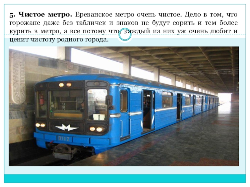 Слайд 125. Чистое метро. Ереванское метро очень чистое. Дело в том, что