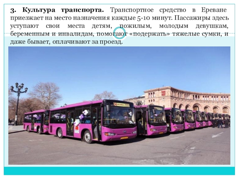 Слайд 103. Культура транспорта. Транспортное средство в Ереване приезжает на место назначения