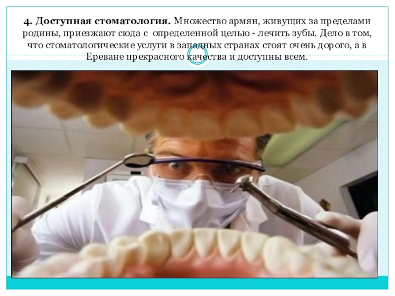 Слайд 114. Доступная стоматология. Множество армян, живущих за пределами родины, приезжают сюда