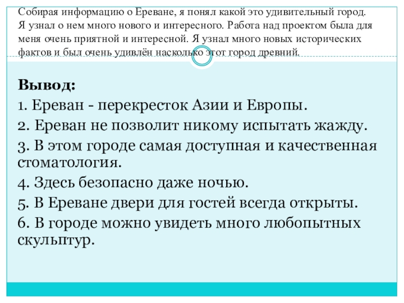 Слайд 17Собирая информацию о Ереване, я понял какой это удивительный город.