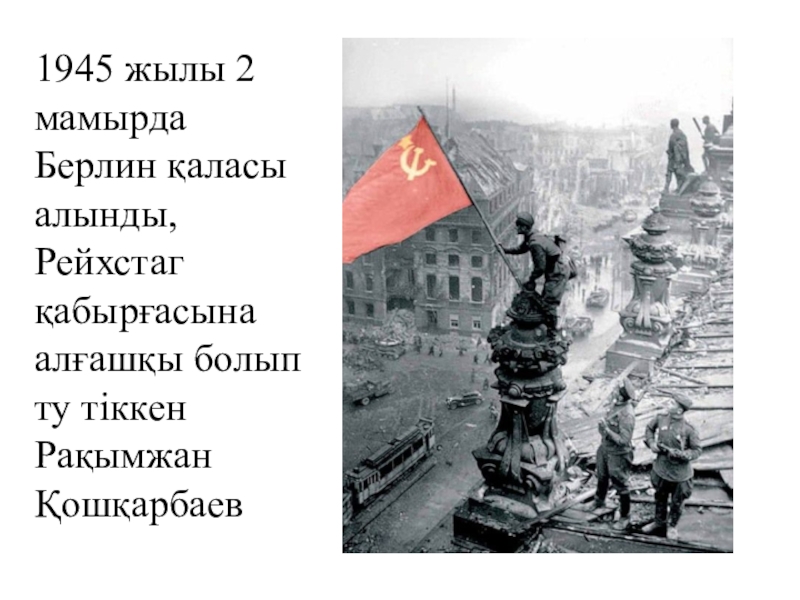 Слайд 151945 жылы 2 мамырда Берлин қаласы алынды, Рейхстаг қабырғасына алғашқы болып