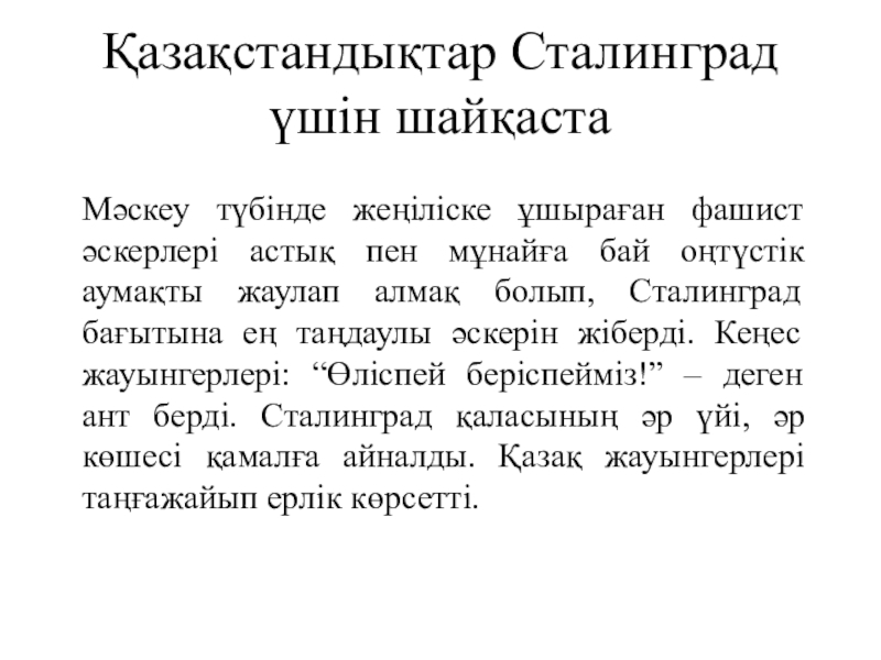 Слайд 13Қазақстандықтар Сталинград үшін шайқаста