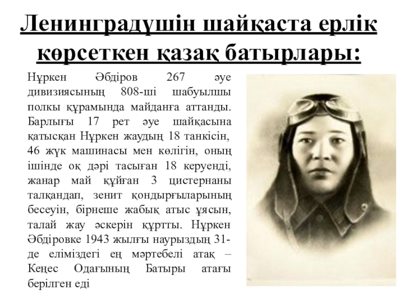 Слайд 8Ленинградүшін шайқаста ерлік көрсеткен қазақ батырлары: