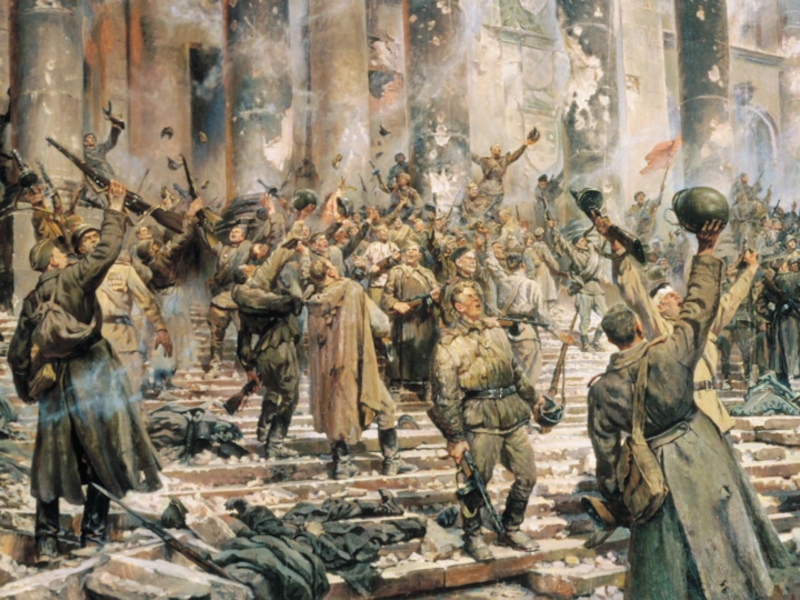 кеңес халқы неміс басқыншыларынан азат еткен Еуропа елдерінің Варшава мен Прага, Будапешт пен Бухарестің, София мен Белградтың, Париж бен Венаның, жер шарының басқа да көптеген қалаларының тұрғындары тойлайды.