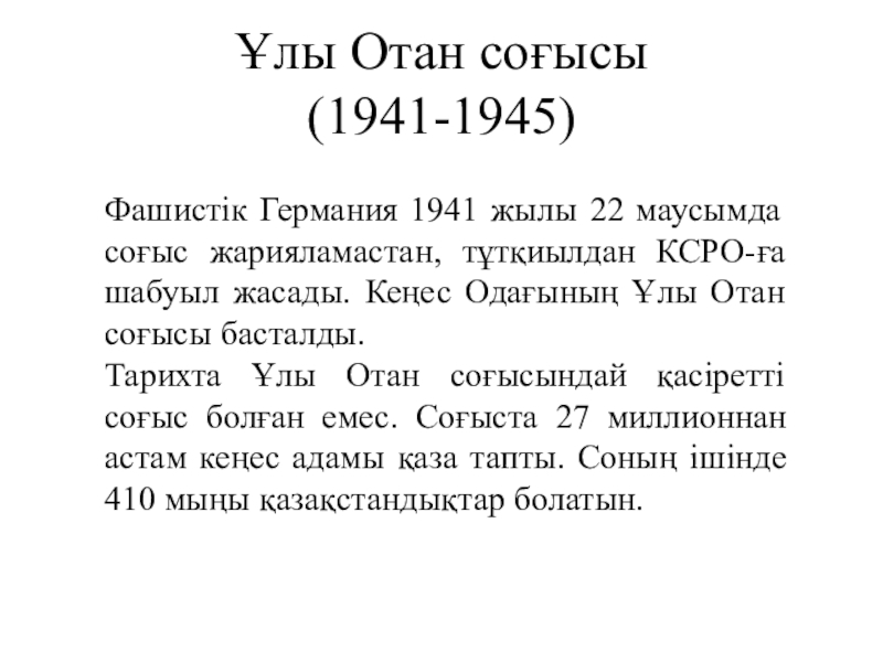 Слайд 2Ұлы Отан соғысы