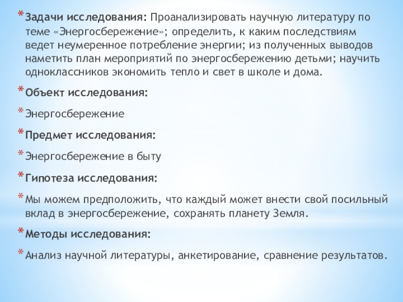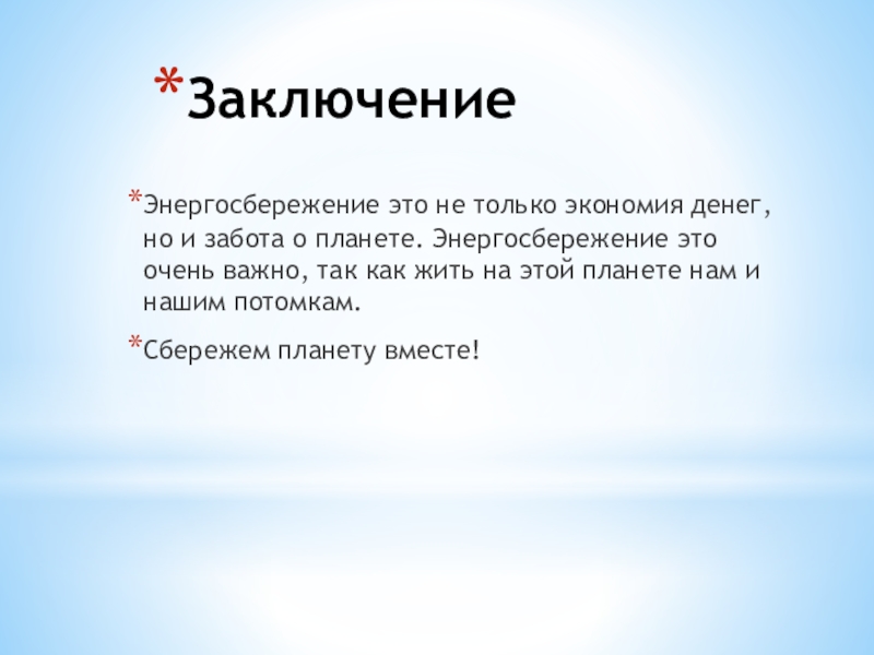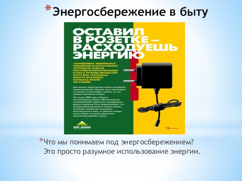 Тема: «Бережем энергию»