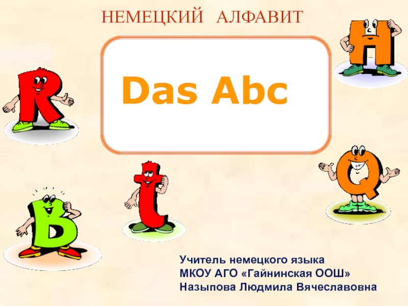 Das AbcНЕМЕЦКИЙ АЛФАВИТУчитель немецкого языкаМКОУ АГО «Гайнинская ООШ»Назыпова Людмила Вячеславовна