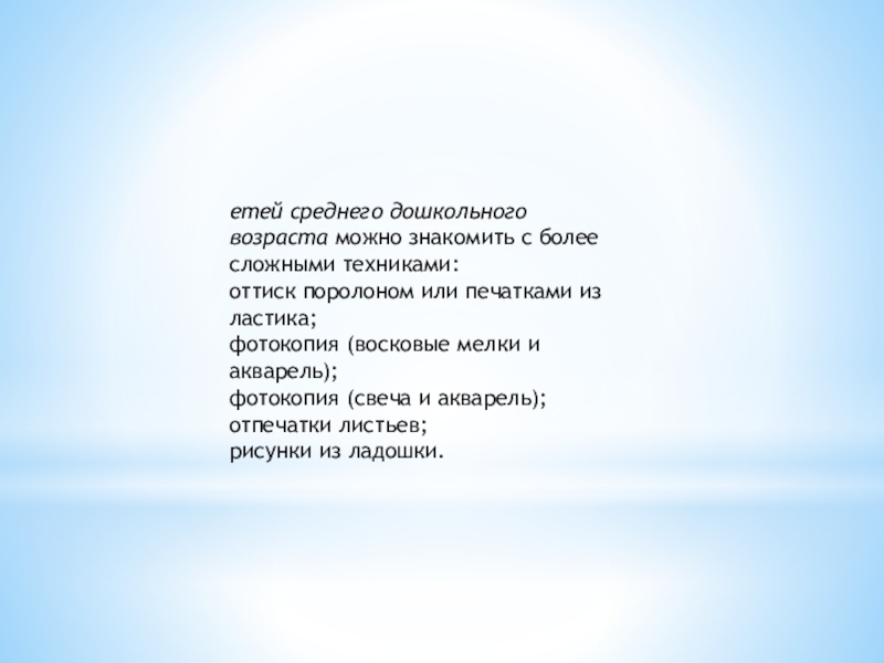 Слайд 7етей среднего дошкольного возраста можно знакомить с более сложными техниками: