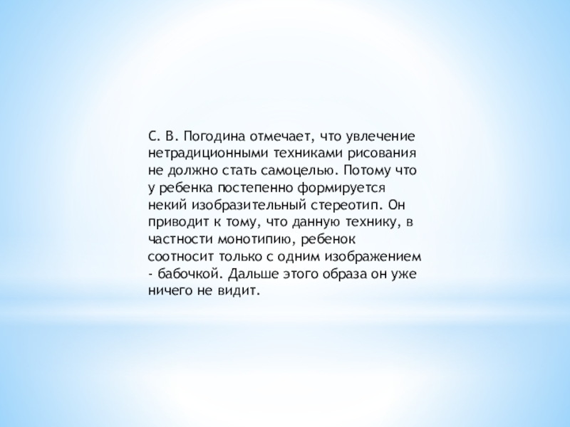Слайд 5С. В. Погодина отмечает, что увлечение нетрадиционными техниками рисования не должно