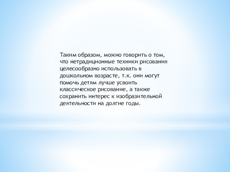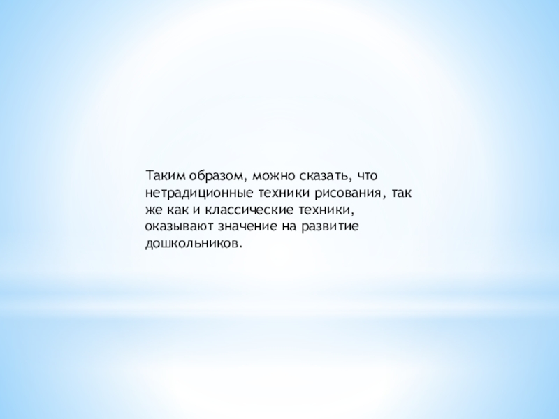 Слайд 13Таким образом, можно говорить о том, что нетрадиционные техники рисования целесообразно