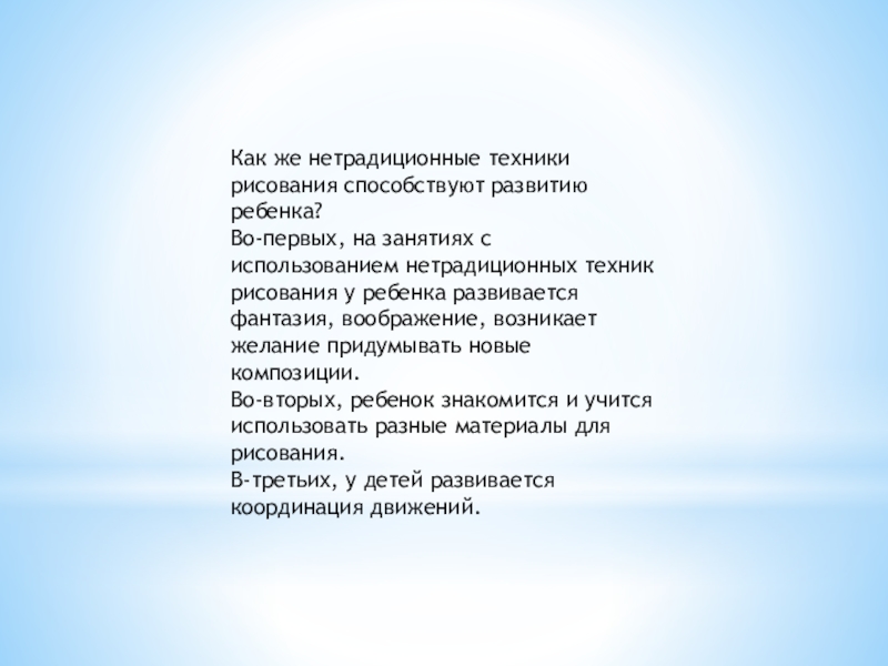 Слайд 10Как же нетрадиционные техники рисования способствуют развитию ребенка?