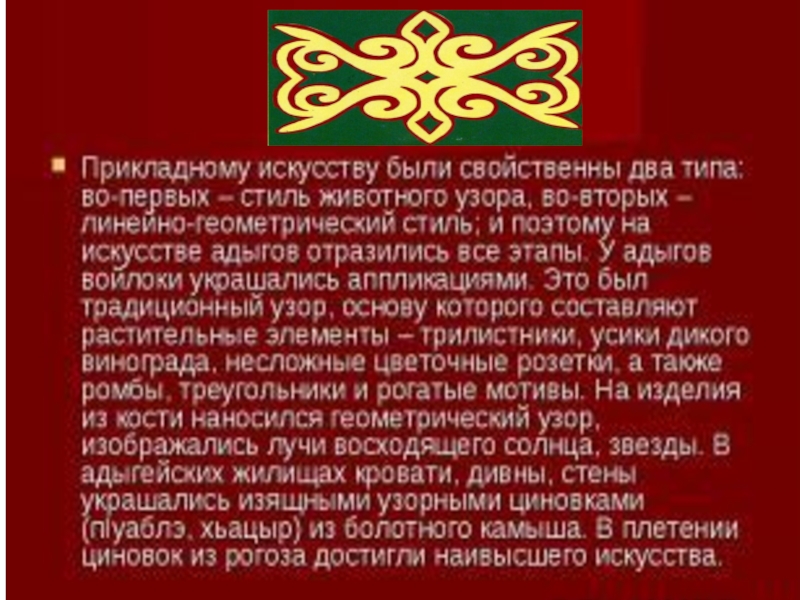 Презентация, доклад по нравственно - патриотическому воспитанию Адыгейские узоры