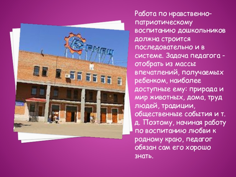 А почувствует ли человек привязанность к родной земле или отдалится от нее, это уже зависит от обстоятельств жизни и воспитания. Поэтому важно, чтобы ребенок уже в дошкольном возрасте почувствовал личную ответственность за родную землю и ее будущее.