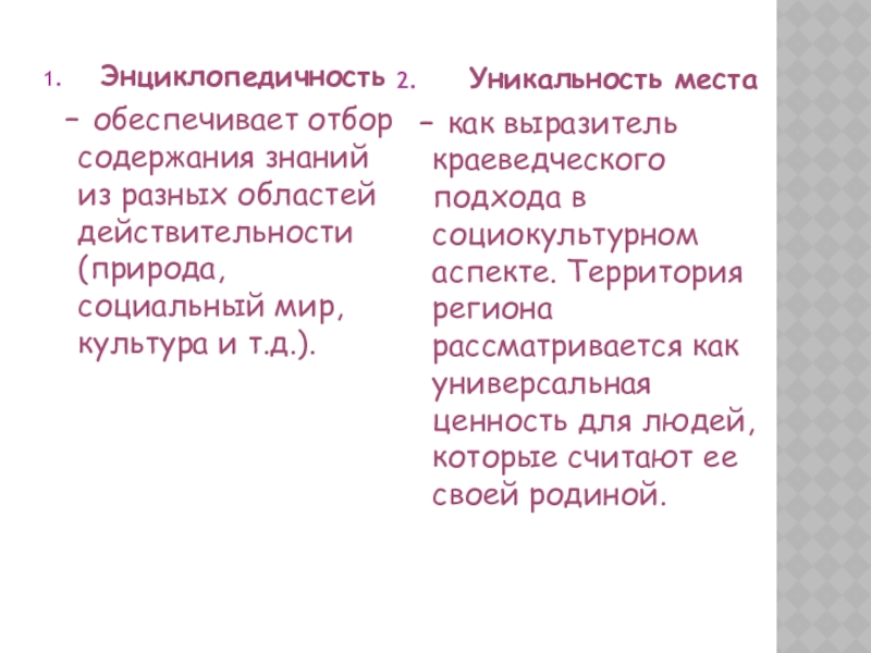 – как выразитель краеведческого подхода в социокультурном аспекте. Территория региона рассматривается как универсальная ценность для людей, которые считают ее своей родиной.
